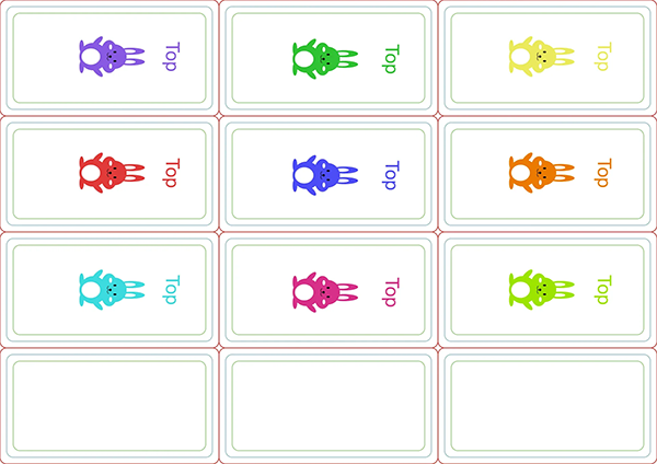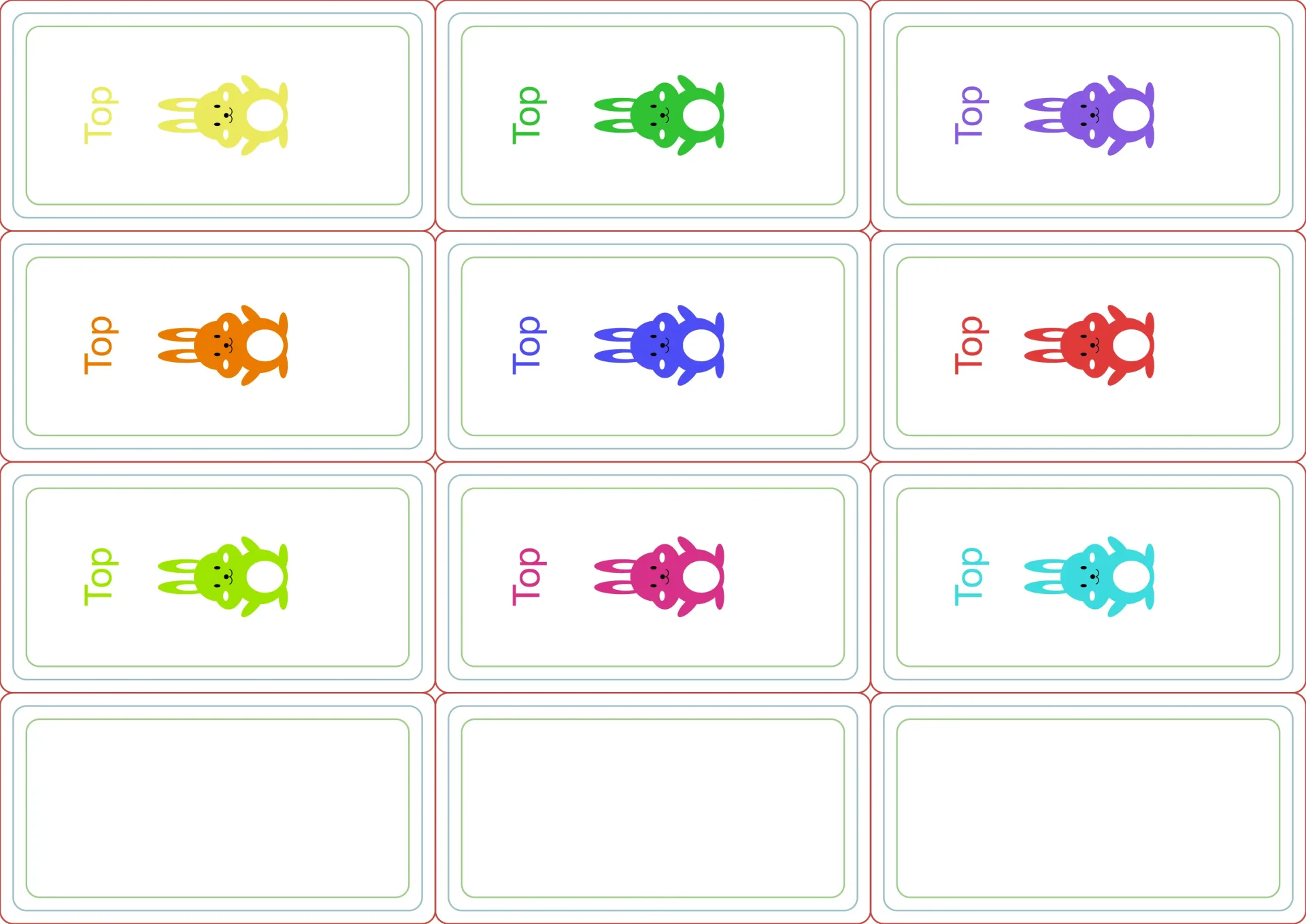 For double-sided cards, the front and back card need to be on 2 separate pages. Please note that the backs must be aligned correctly so that they match up correctly with the fronts. This means that the card on the top left of the front will be placed on the card on the top right of the back. Check out below images to see how the backs align! If you submit your file the wrong way around, the backs will be upside down. Pay careful attention to how the outlines and text are laid out.