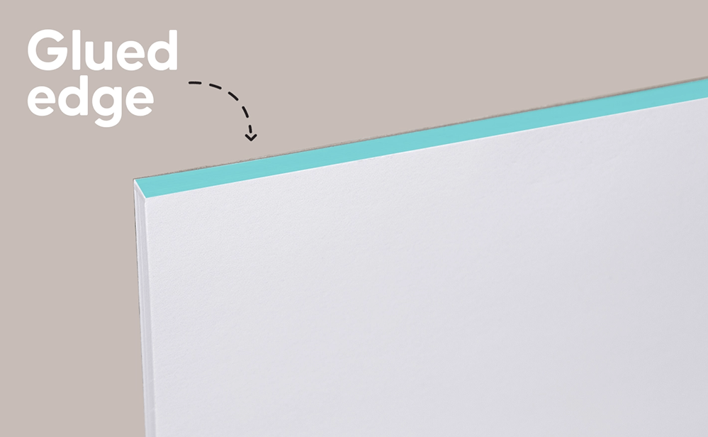 Most commonly used for tear-off pads, glued binding is created by stacking sheets of paper and then applying a strong adhesive to the edge,without a cover. This allows individual pages to be torn off easily when needed.