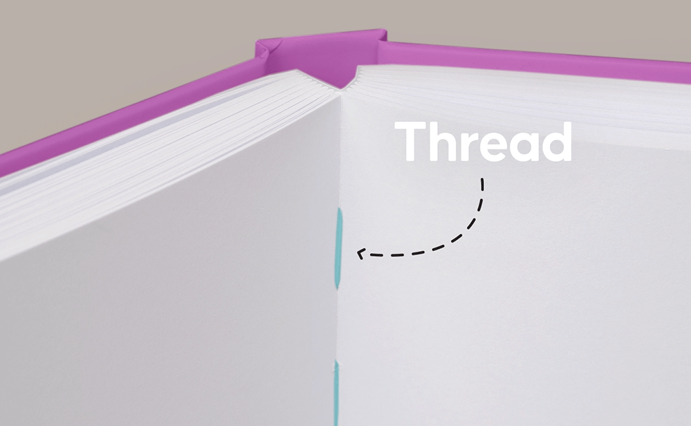 A bookbinding technique where pages are sewn together using strong thread. This method creates a durable,flexible spine that allows the book to open flat. It's commonly used for high-quality, long-lasting books. journals, and art books.